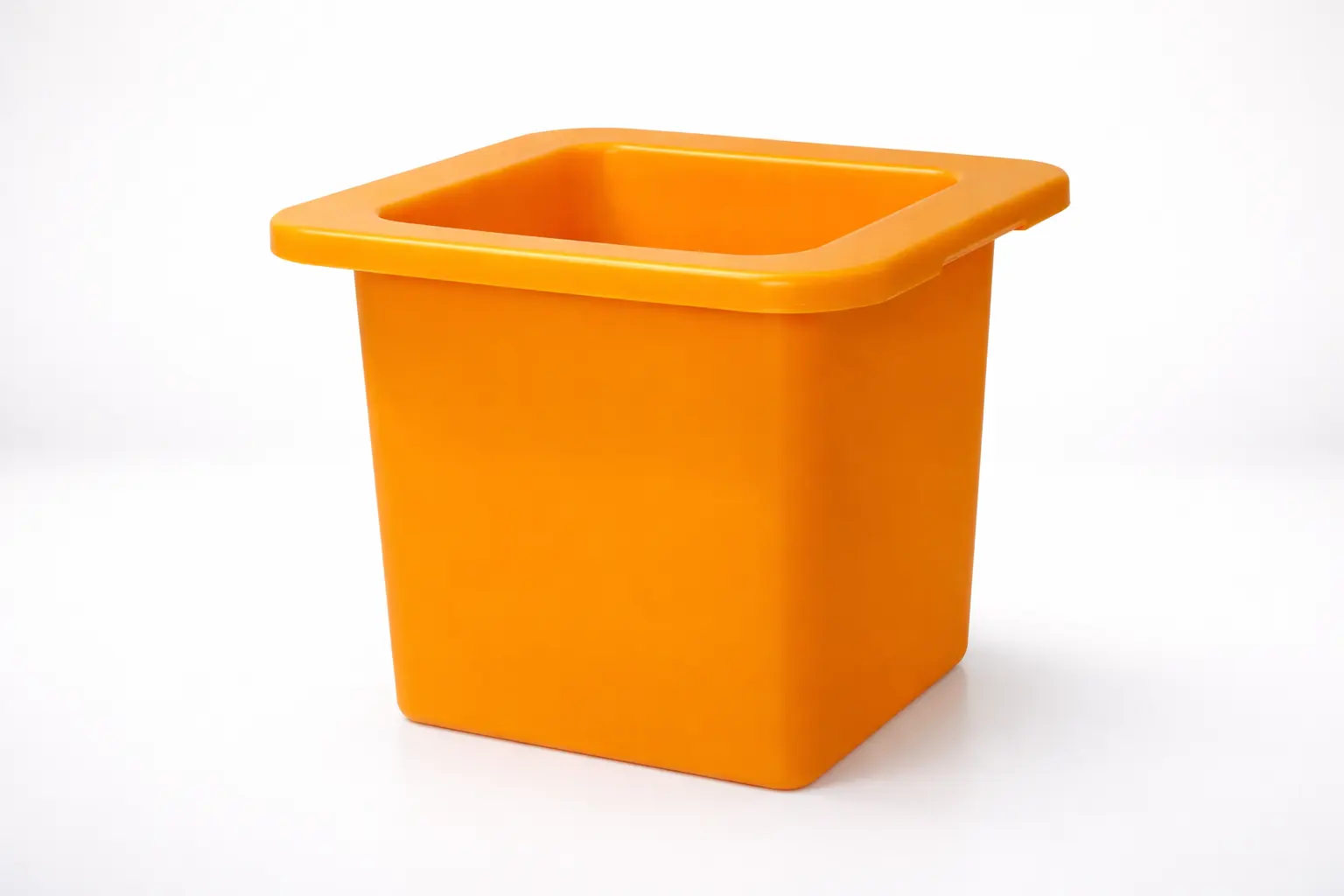 Das Rotationsformen Design bietet enorme Freiheiten. Wir können komplexe Geometrien, Doppelwandigkeiten und verschiedene Oberflächenstrukturen realisieren. In puncto Optik fertigen wir in nahezu jeder gewünschten RAL-Farbe, wobei das Material komplett durchgefärbt ist.