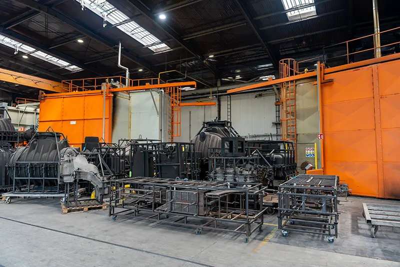 Nach dem kontrollierten Abkühlen in speziellen Kühlstationen wird das fertige Kunststoffteil entnommen und für die präzise Nachbearbeitung vorbereitet. Durch dieses Verfahren realisieren wir nahtlose großvolumige Hohlkörper mit einer Produktgröße von bis zu 6 Metern.